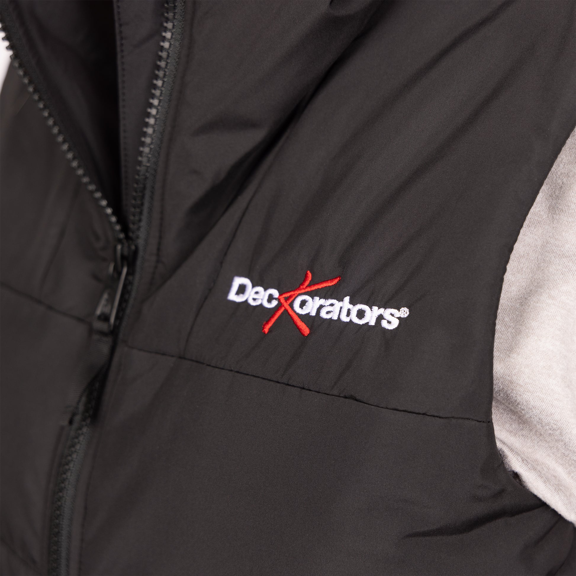 - Deckorators logo embroidered on left chest